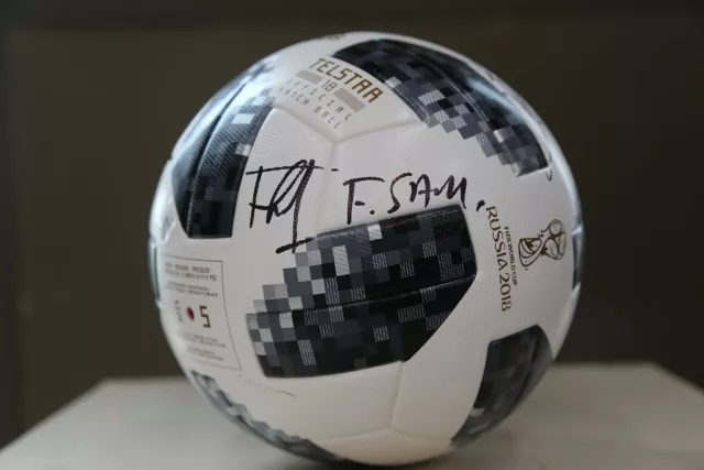 (圖:國(guó)際足聯(lián)秘書長(zhǎng)法特瑪·薩姆拉簽名球)