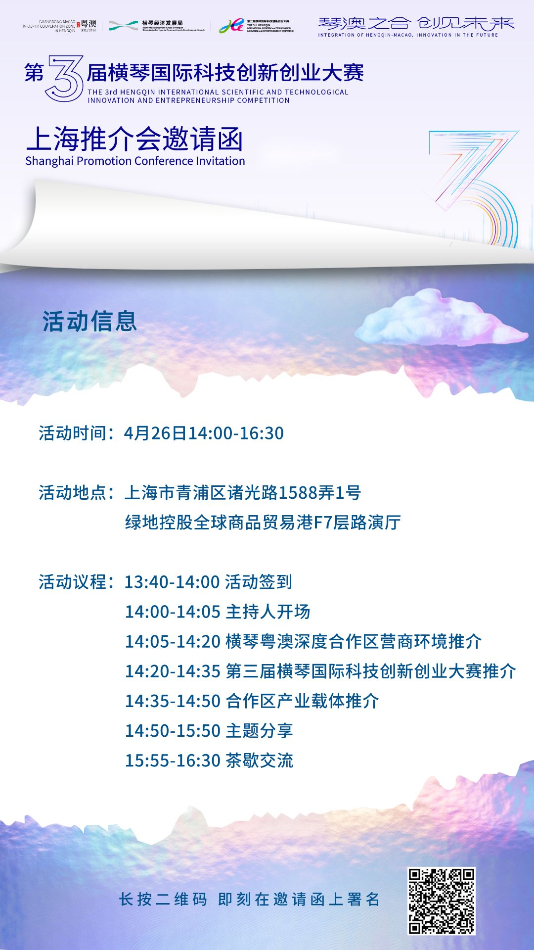 本屆大賽將于4月26日在上海隆重舉辦推介會,現(xiàn)向海內(nèi)外優(yōu)秀行業(yè)貴賓、意向參賽團(tuán)隊發(fā)出邀請函,共商科創(chuàng)大賽競逐盛典。