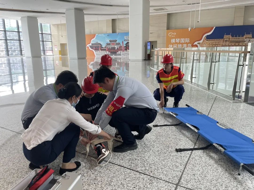 為積極響應(yīng)第22個(gè)全國安全生產(chǎn)月主題活動(dòng),進(jìn)一步增強(qiáng)消防安全意識(shí),提升突發(fā)應(yīng)急事件處理能力,根據(jù)市國資委2023年“安全生產(chǎn)月”和“安全生產(chǎn)南粵行”活動(dòng)的相關(guān)工作要求,在大橫琴集團(tuán)的統(tǒng)一部署下,6月15日上午,珠海大橫琴口岸實(shí)業(yè)有限公司(下稱“口岸公司”)聯(lián)合珠海橫琴世聯(lián)云城市服務(wù)有限公司、珠海安保集團(tuán)橫琴分公司等單位,組織開展了橫琴口岸2023年上半年消防應(yīng)急疏散演練活動(dòng)。本次活動(dòng)邀請(qǐng)橫琴消防救援大隊(duì)、珠海市人民醫(yī)院橫琴醫(yī)院相關(guān)負(fù)責(zé)人現(xiàn)場(chǎng)觀摩指導(dǎo),近百人參加現(xiàn)場(chǎng)演練。