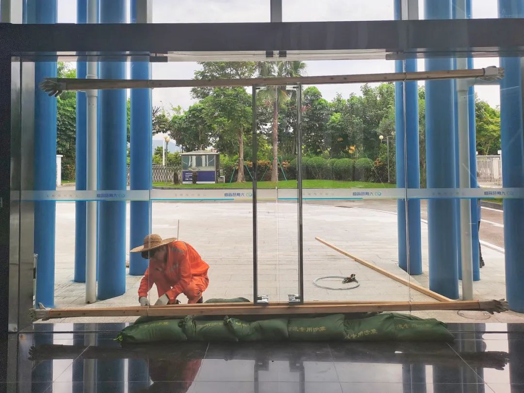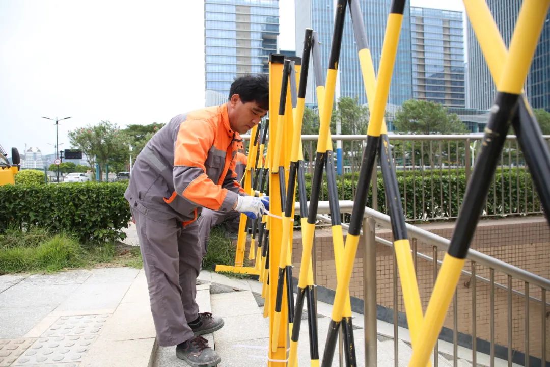 為進(jìn)一步保障居民的生命財(cái)產(chǎn)安全,大橫琴城資對(duì)在管公共停車場(chǎng)的崗?fù)?、設(shè)施設(shè)備等進(jìn)行加固,并向車主發(fā)送預(yù)警信息。在物業(yè)集市、新家園小區(qū)、銀鑫花園小區(qū)、總部大廈、二線通道等項(xiàng)目放置沙袋、擋板、鐵馬等,及時(shí)加固門窗,排查安全隱患。