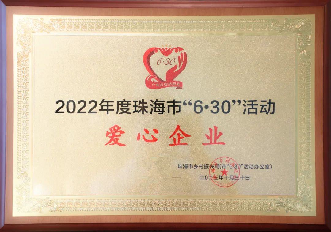 為深入貫徹黨的二十大和中央農(nóng)村工作會(huì)議精神,落實(shí)市委、市政府關(guān)于統(tǒng)籌實(shí)施鄉(xiāng)村振興戰(zhàn)略和“百縣千鎮(zhèn)萬(wàn)村高質(zhì)量發(fā)展工程”工作部署,匯聚更多社會(huì)力量參與“6·30”活動(dòng),鞏固脫貧成果、助力鄉(xiāng)村振興、促進(jìn)共同富裕,根據(jù)《中共珠海市委農(nóng)村工作領(lǐng)導(dǎo)小組〈關(guān)于印發(fā)珠海市2023年“6·30”助力鄉(xiāng)村振興活動(dòng)工作方案〉的通知》(珠委農(nóng)組〔2023〕6號(hào))精神,市鄉(xiāng)村振興局(市6·30活動(dòng)辦)開(kāi)展2022年度珠海市“6·30”活動(dòng)“愛(ài)心企業(yè)、愛(ài)心團(tuán)體、愛(ài)心個(gè)人”評(píng)選活動(dòng),向社會(huì)傳遞珠海人民樂(lè)善好施的精神品德,激發(fā)社會(huì)各界共襄善舉、助力鄉(xiāng)村振興。經(jīng)評(píng)審,珠海大橫琴集團(tuán)有限公司(以下簡(jiǎn)稱大橫琴集團(tuán))被授予2022年度珠海市“6·30”活動(dòng)“愛(ài)心企業(yè)”榮譽(yù)稱號(hào)。