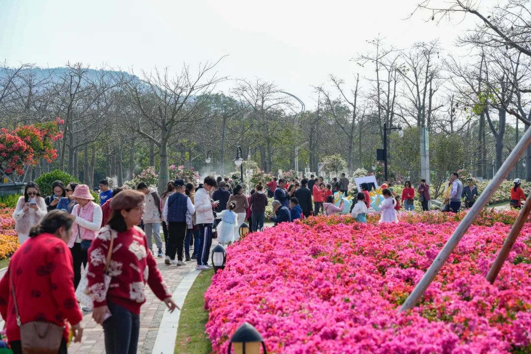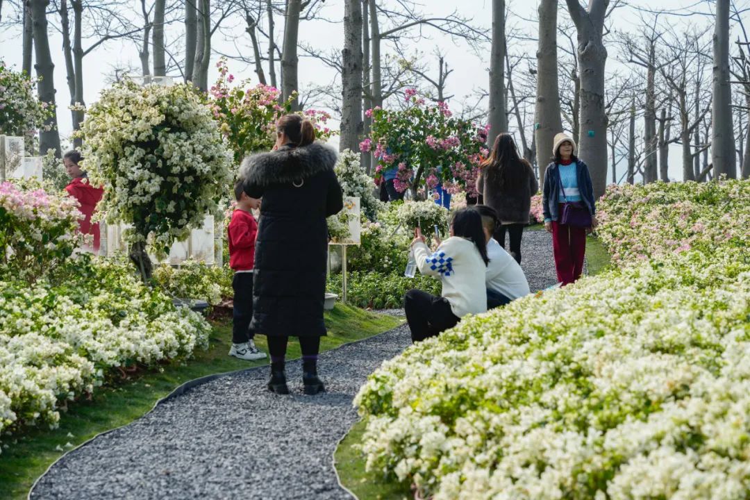 其中,花海長廊的簕杜鵑園成為熱門打卡地,色彩斑斕的花朵絢爛盛放,設(shè)計師將靈感奇思揉進(jìn)景觀空間四個分區(qū),占地總面積達(dá)5000平方米,打造冰天雪地-粉妝玉砌-紅妝素裹-前橙似錦四大板塊的簕杜鵑專類展園,引來大量游客前來拍照打卡。