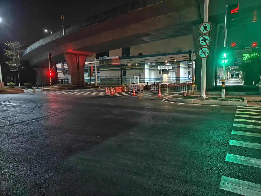 對(duì)深井通道“二線”通道內(nèi)有局部破損、高差的道路進(jìn)行維修,共計(jì)維修瀝青路面990㎡,有效提高了該段道路行車的安全性和舒適性。此外,通過(guò)改造交通信號(hào)燈、拓寬車道、將綠化帶改造為瀝青路面等多種方式,進(jìn)一步優(yōu)化交通組織,保障道路交通秩序環(huán)境安全有序。