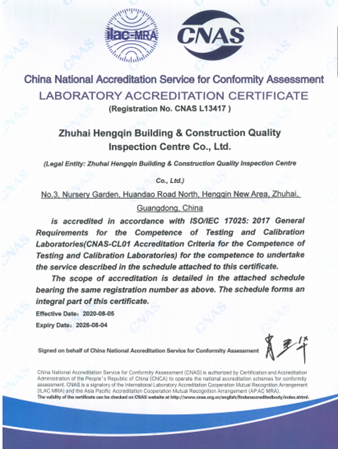 2024年5月25日至26日,由中國合格評定國家認可委員會(CNAS)委派的評審專家組一行四人,對珠海大橫琴集團有限公司(以下簡稱大橫琴集團)下屬企業(yè)珠海市橫琴新區(qū)建設(shè)工程質(zhì)量檢測中心有限公司(以下簡稱橫琴檢測中心)開展CNAS實驗室認可復(fù)評審。