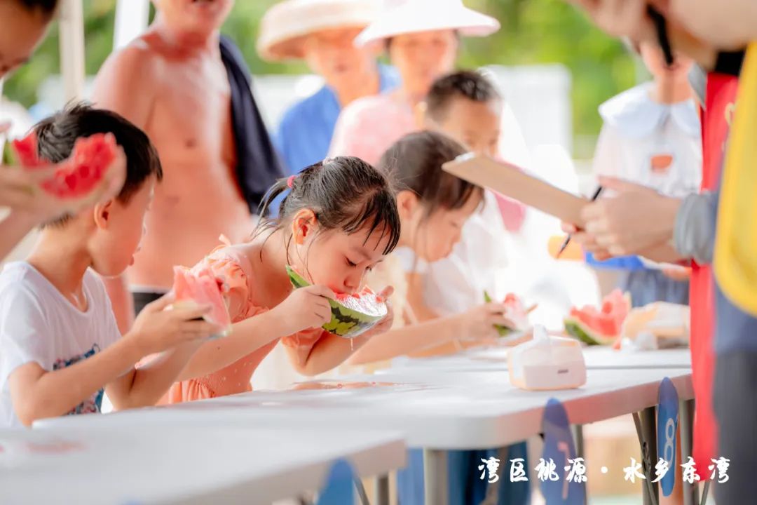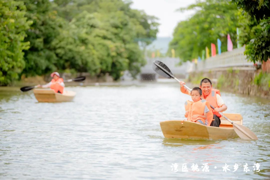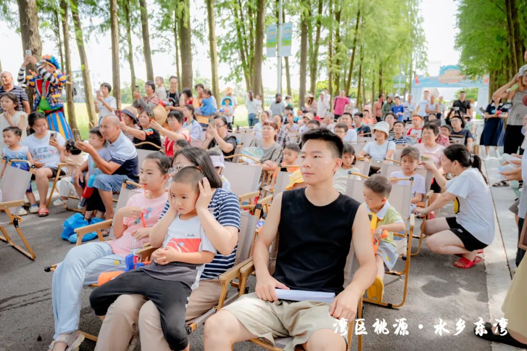 隨后,現(xiàn)場的水車伴著歡笑聲噴灑出陣陣水霧,也標(biāo)志著此次“東灣夏日清涼大作戰(zhàn)”活動正式開始。在接下來的兩天時間里,活動將充分結(jié)合東灣村民俗文化和稻田、河涌等良好的生態(tài)環(huán)境基底,通過農(nóng)艇競渡、趣味戲水、非遺剪影、東灣美食、清涼集市等元素,將傳統(tǒng)鄉(xiāng)村元素與現(xiàn)代競技、活動相融合,打造一系列清涼刺激的互動體驗(yàn)?;顒有问截S富多樣,既有團(tuán)隊合作的競技項(xiàng)目,也有輕松愉快的趣味游戲,還有特色清涼集市供游客休閑購物,可謂是“面面俱到”。