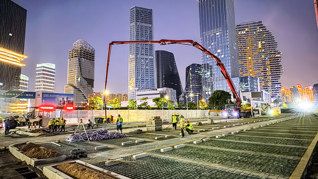 紅旗村2號停車場位于橫琴鬧市區(qū),旅客較多、人流量大。加上項(xiàng)目地處老舊城區(qū),地下管線錯(cuò)綜復(fù)雜且施工空間受限,增加了改造的難度。為了減少對周邊居民和商業(yè)的影響,大橫琴股份科學(xué)組織施工,合理分配任務(wù)及物資運(yùn)輸,通過人工探挖管線、錯(cuò)峰施工、交叉作業(yè)等措施,加快推進(jìn)項(xiàng)目建設(shè)。