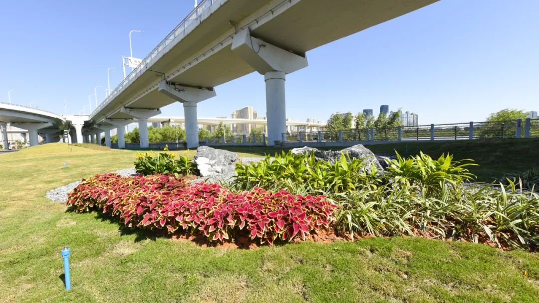 徜徉在沿岸游憩步道上,一抹綠色、一簇鮮花、一處灌叢,目之所及,心曠神怡。