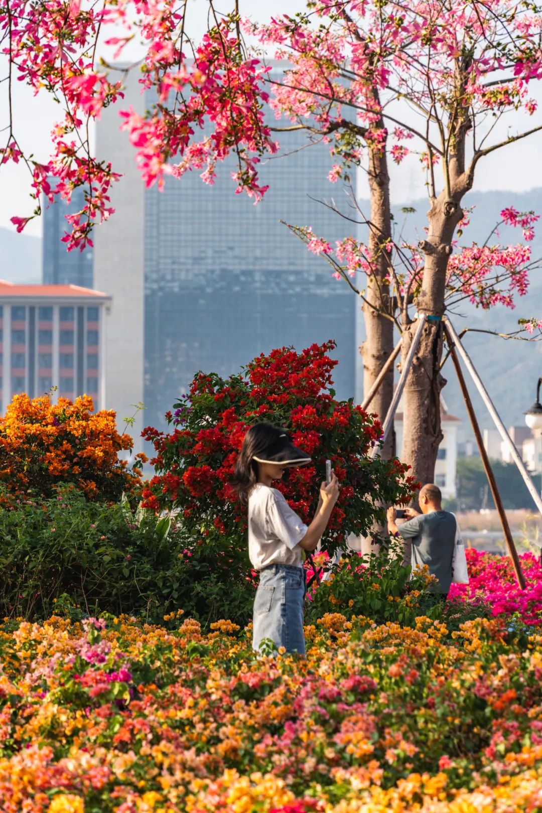 花海長廊讓現(xiàn)代化生活與自然美景之間的距離不再遙遠?;ㄆ谄陂g,來到這里的有工作之余來放松心情的橫琴居民、享受自然風景充實周末時光的澳門市民、來南方體驗姹紫嫣紅的冬天的各地旅客……