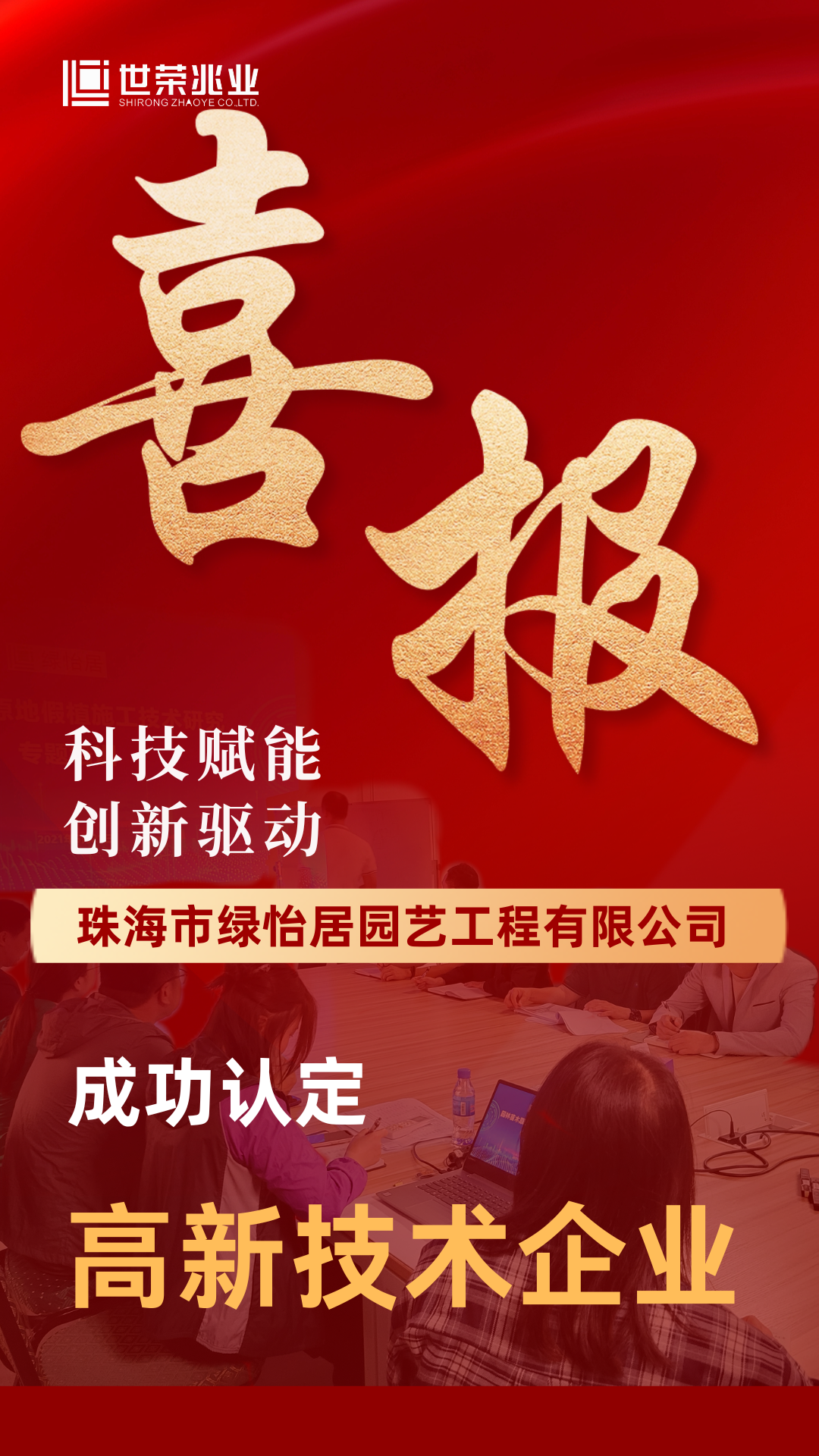 近日,大橫琴集團上市平臺廣東世榮兆業(yè)股份有限公司旗下珠海市綠怡居園藝工程有限公司成功通過高新技術(shù)企業(yè)認定。這一認證既是世榮兆業(yè)在大橫琴集團賦能下深化科技轉(zhuǎn)型的階段性成果,更是對綠怡居多年堅持技術(shù)研發(fā)的權(quán)威認可。