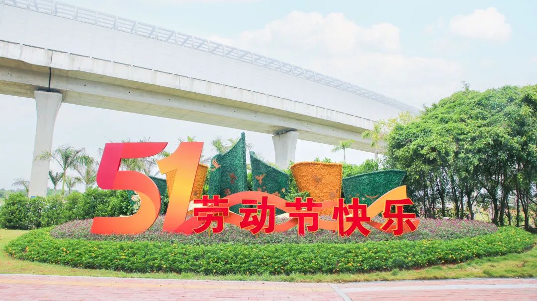 橫琴二橋市政綠地的造景則以 “51勞動(dòng)節(jié)快樂” 為主題,精心搭配千日紅、木春菊等特色花卉,打造出繽紛絢麗的節(jié)日花境。這一抹亮色不僅為城市道路增添了靈動(dòng)色彩,給過往的行人和車輛帶來視覺上的享受,同時(shí)也傳遞出對每一位辛勤勞動(dòng)者的崇高敬意和美好祝福。